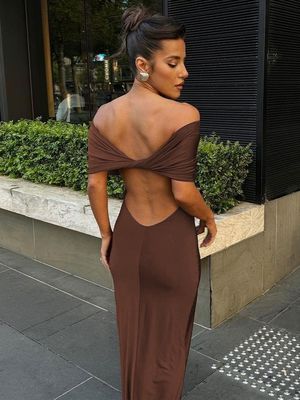 কাস্টম এক-লাইন কাঁধ প্লিট পোষাক স্লিমিং স্লিট নিচের স্কার্ট পোষাক নারী